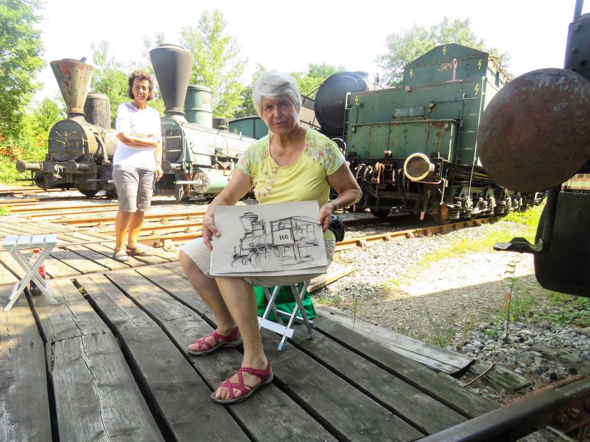 Ursula mit Ihrer Kohlezeichnung Published 23. Juli 2016 at 2304 × 1728 in Plein Air Malen im Eisenbahnmuseum in Strasshof Ursula mit ihrer Kohlezeichnung