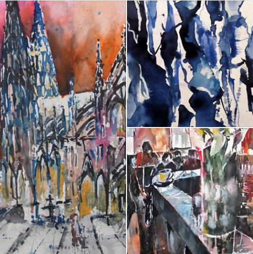 ————————————————Hermi Kürner was born in Upper Austria. Since her young days she is concentrated on drawing and painting. Due to organizing of painting journeys with Bernhard Vogel she began painting with watercolors in 1988. Several solo-exhibitions and the publication of her book „Wels und der Rest der Welt“ were further steps in her career. She is both member of IWS Austria and the Artists Association of Upper Austria.