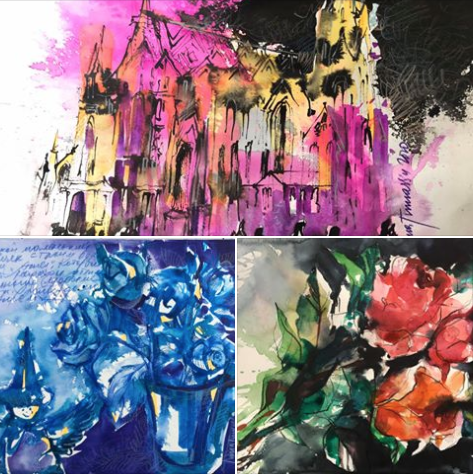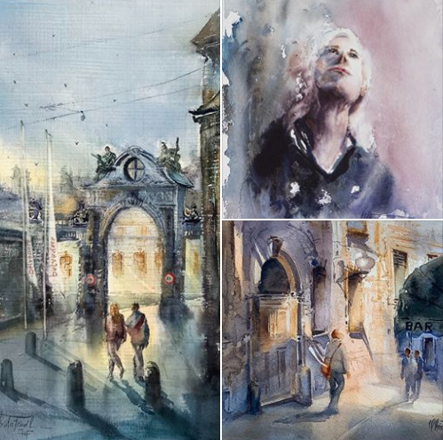 Inna Pavlecka-Tumarkins Aquarelle strotzen voll Energie! Sie verwendet einmal expressive Farben und dann wieder monochrome Kompositionen, aber immer ist in ihren Bildern eine besonderer Stimmung enthalten. Ihr Background ist die Werbegrafik und Kunsterziehung. Heute veranstaltet sie Kunstkurse und Workshops in ihrer eigenen Galerie.