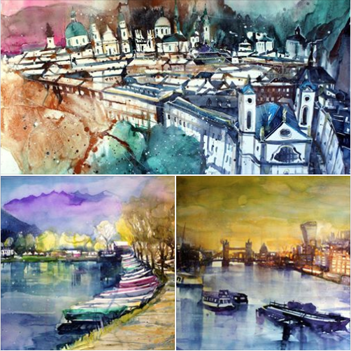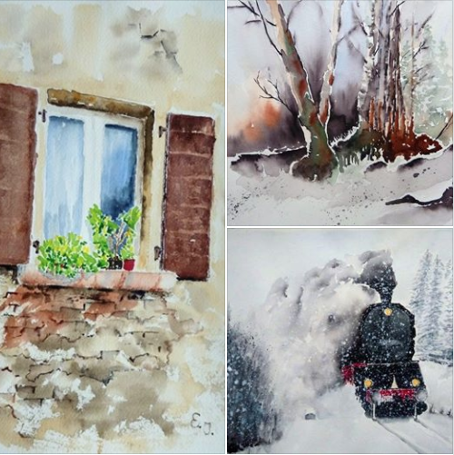 The in the Slovak Republic born Iveta Jenenska lives nowadays in the Tyrol. She steadily improved her watercolor technic by workshops with Alfons Frick, Heinz Hofer and at Summer Academies. Her works had been on display at Fabriano and Tirana. With IWS Austria she was always very active and participated at the 1st Alpine Watercolour Challenge and at painting sessions in Salzburg and Lienz, just to name a few.