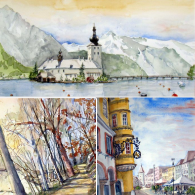 Ingrid Edinger from Vienna was a passionate watercolorist. Her works showed sensitive brush strokes as well as clarity. Exhibitions in Vienna, Lower Austria, Salzburg – and especially in Bad Hofgastein – had been a great success. She participated at IWS Austria events very frequently since 2017. She died in 2020.